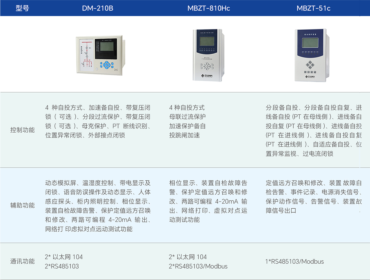 備用電源自投裝置適用于各種電壓等級的備用電源自動投切及自動復位,可根據系統結構進行四種不同形式的自投自復。