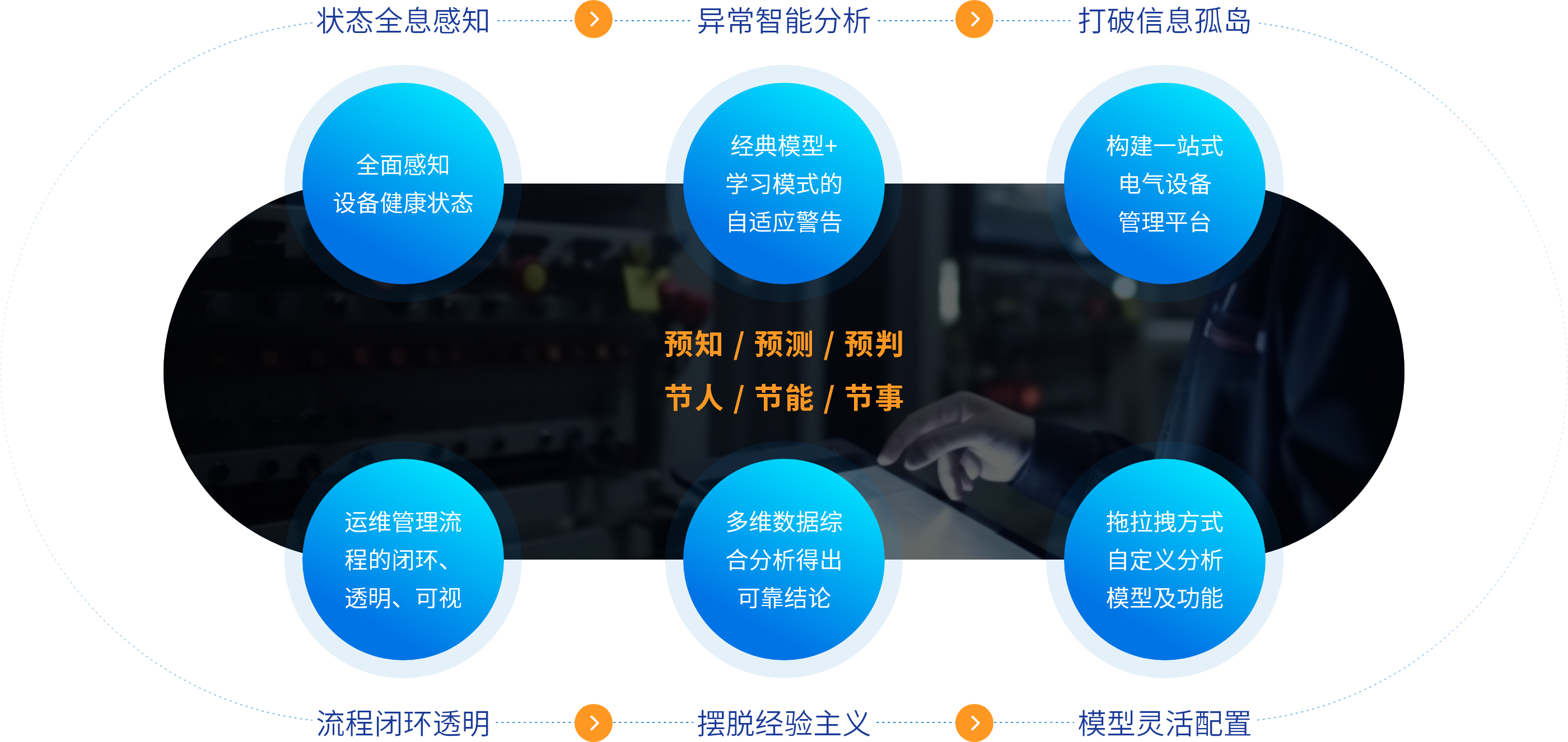 三大業務核心構建的系統,主要服務于工業企業的電氣運維及管理人員,通過對電氣設備狀態的預知、預測、預判,實現